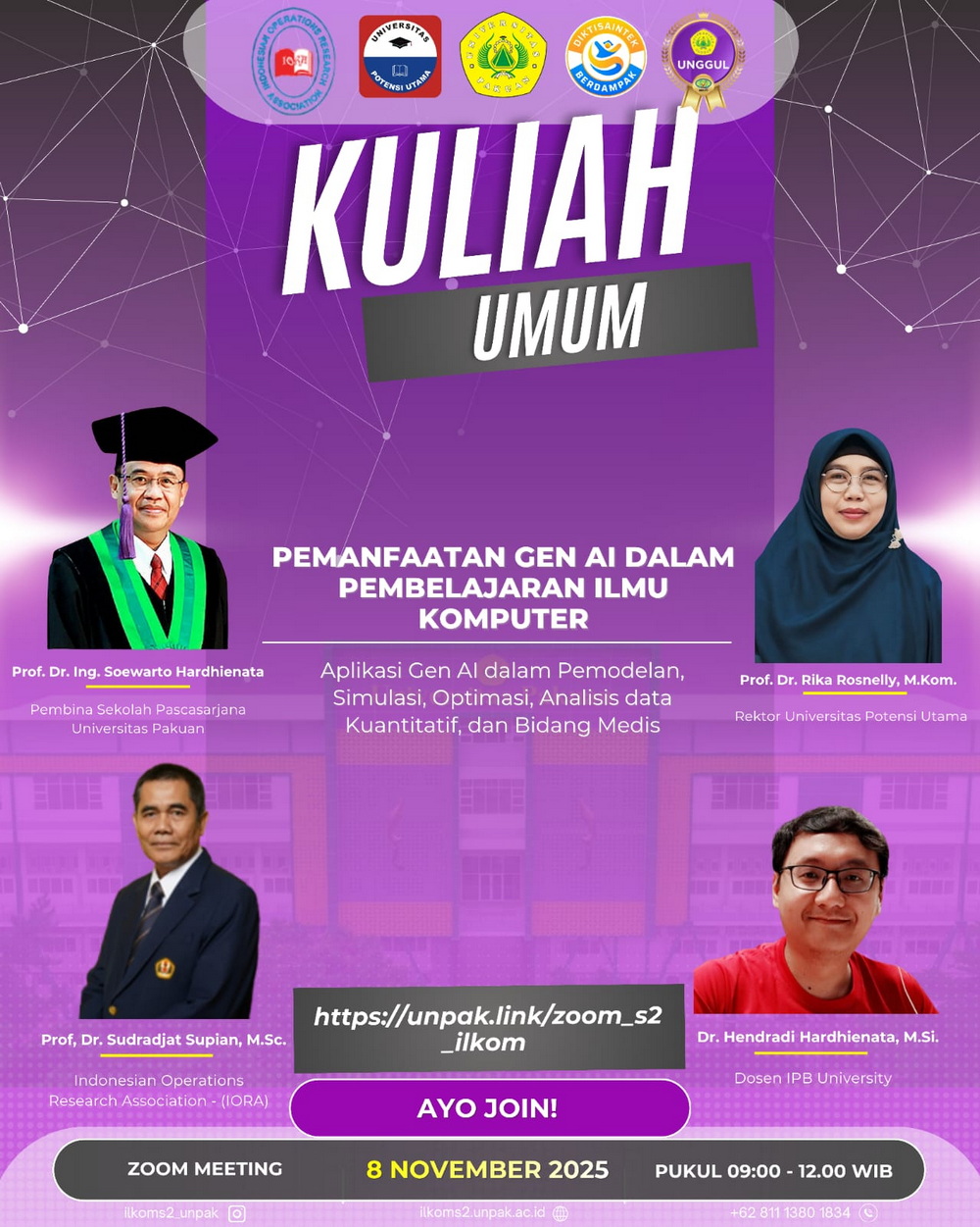 Kuliah Umum: Pemanfaatan Gen AI dalam Pembelajaran Ilmu Komputer Admin Event 11 November 2025 11th International Conference on Global Optimization and Its Application Admin Event 06 February 2024 Workshop LPPM UNPAK 2021 "Writing Scientific Paper for International Publication" Admin Event 08 November 2021 123